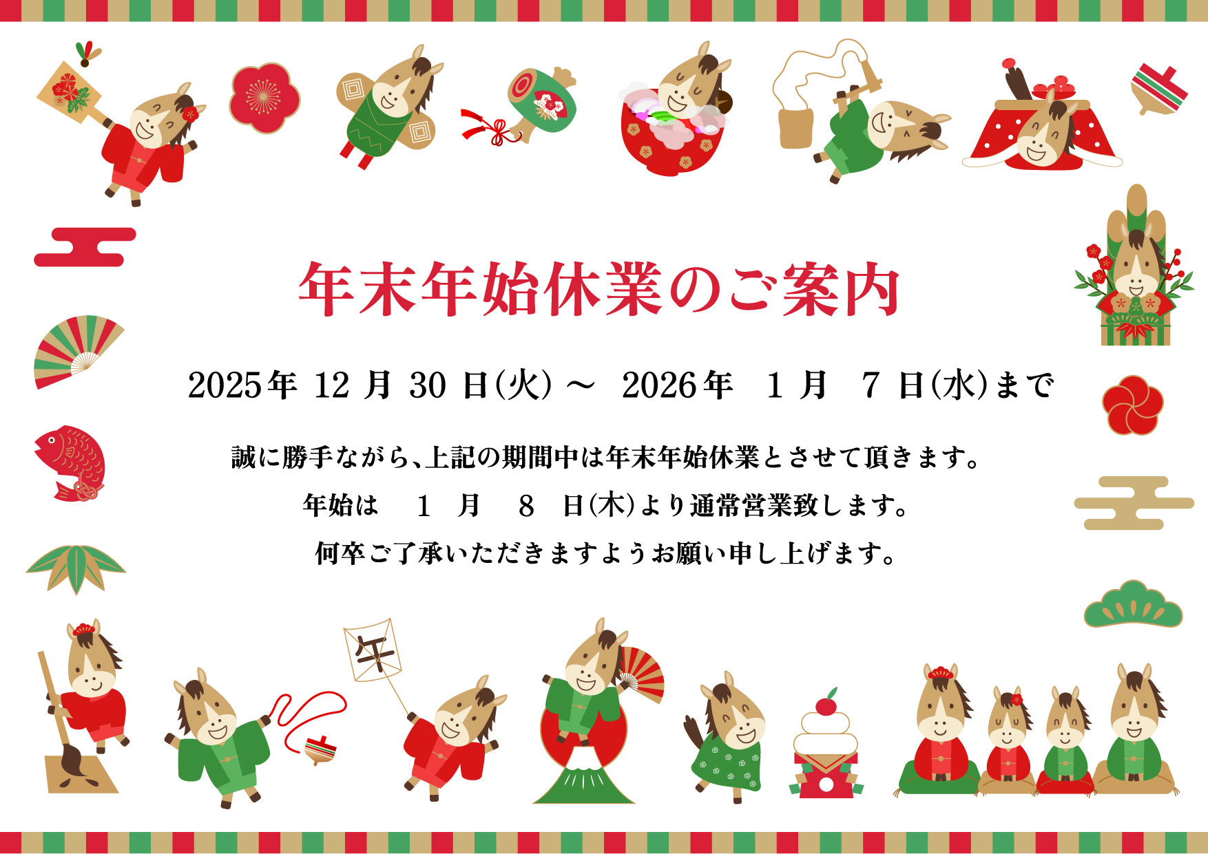 年末年始 休業期間のお知らせ