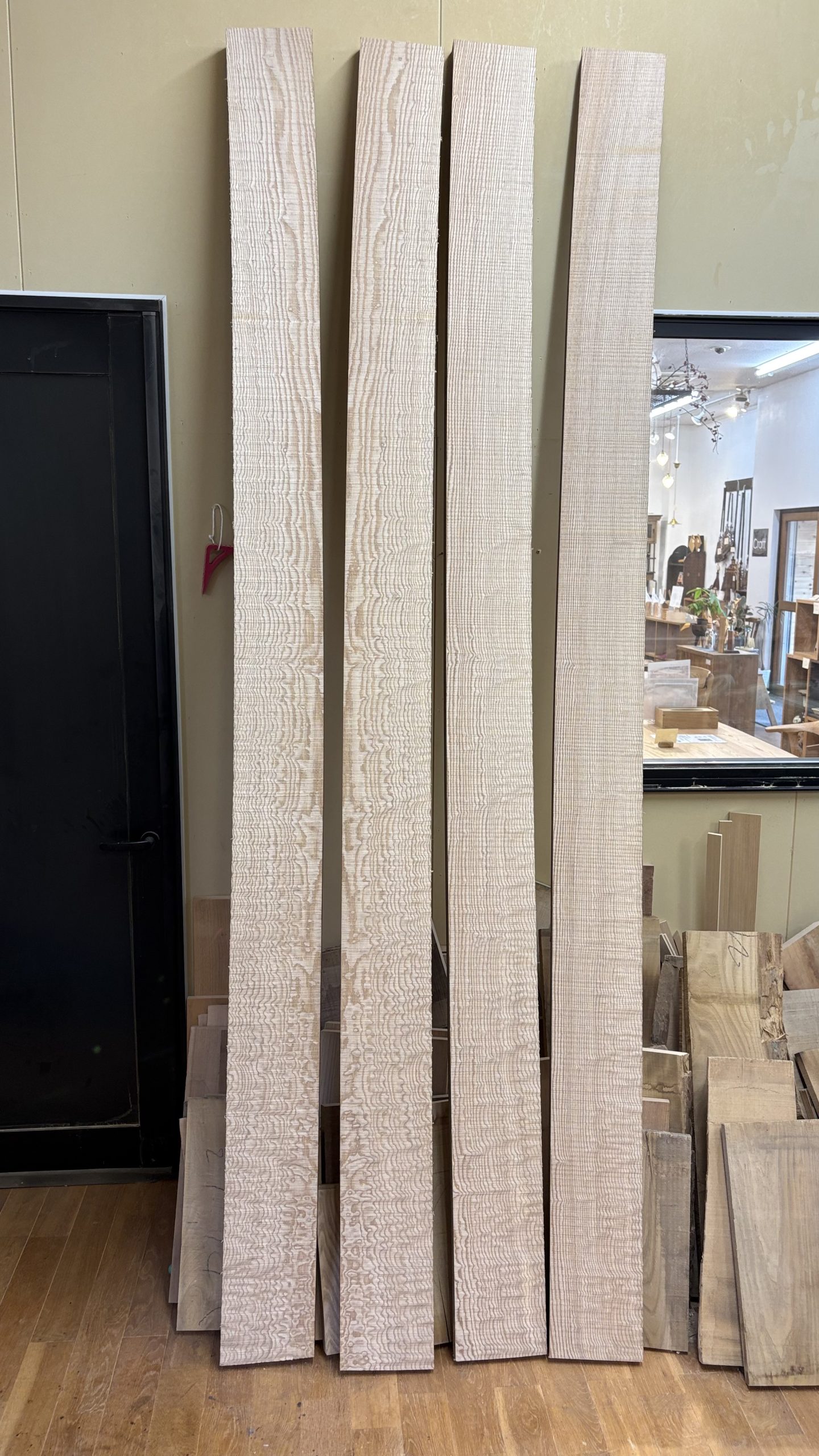 はっきりとした縮み杢が全面に現れた、とても表情の豊かな角材です。