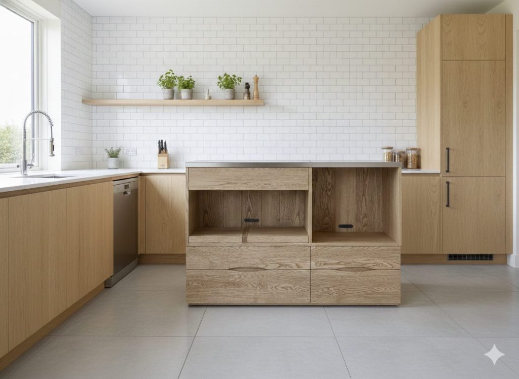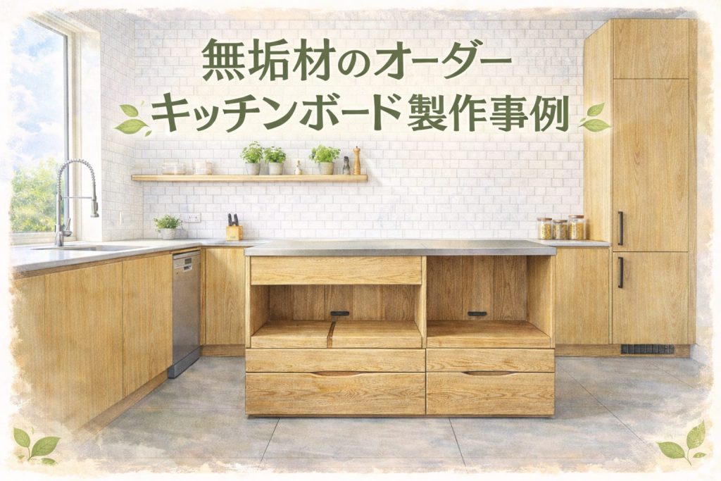 新築マンションに合わせた無垢材のオーダーキッチンボードを製作しました。