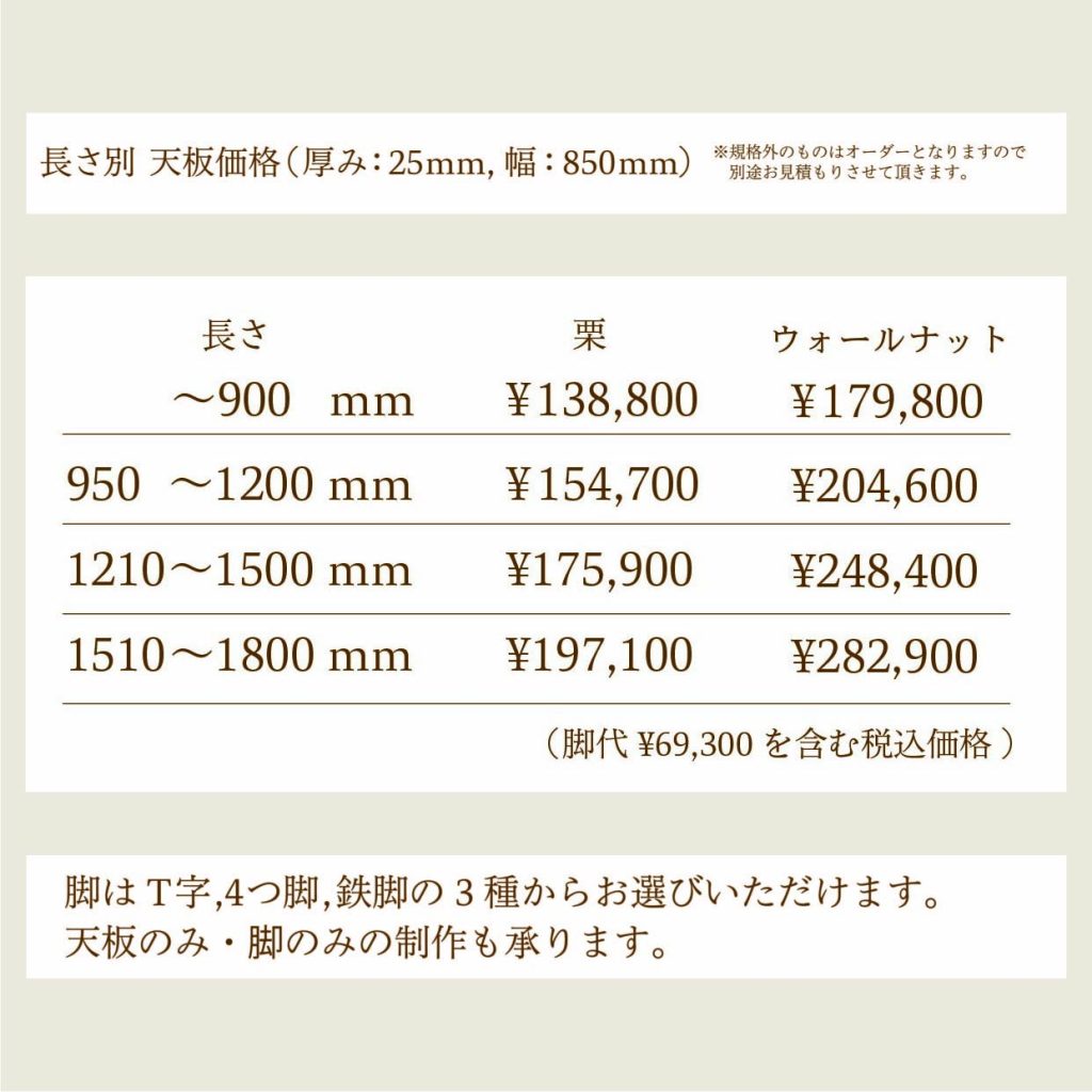 栗 セミオーダーテーブル